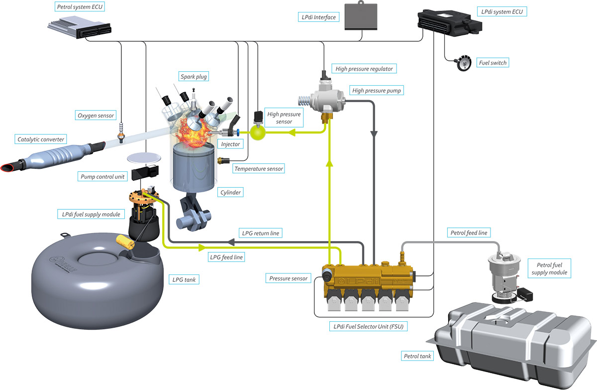LPDI indeplineste normele EURO5 si EURO6, poate functiona ca un monofuel (este singura instalatie din lume de acest fel, adica se poate folosi numai cu GPL, indiferent de temperatura exterioara, nefiind nevoie de benzina). Bineinteles se poate folosi si benzina, daca se doreste, folosind comutatorul.